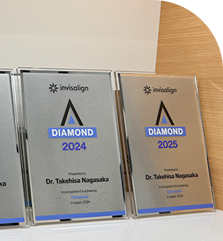 これまでに500症例以上のインビザライン治療を行ってきた実績が認められ、インビザライン社よりLifetime Achievement(インビザライン生涯功績賞)を授与されました。豊富な経験と知識をもとに、患者さん一人ひとりに合わせた適切な矯正治療をご提案いたします。安心してご相談ください。